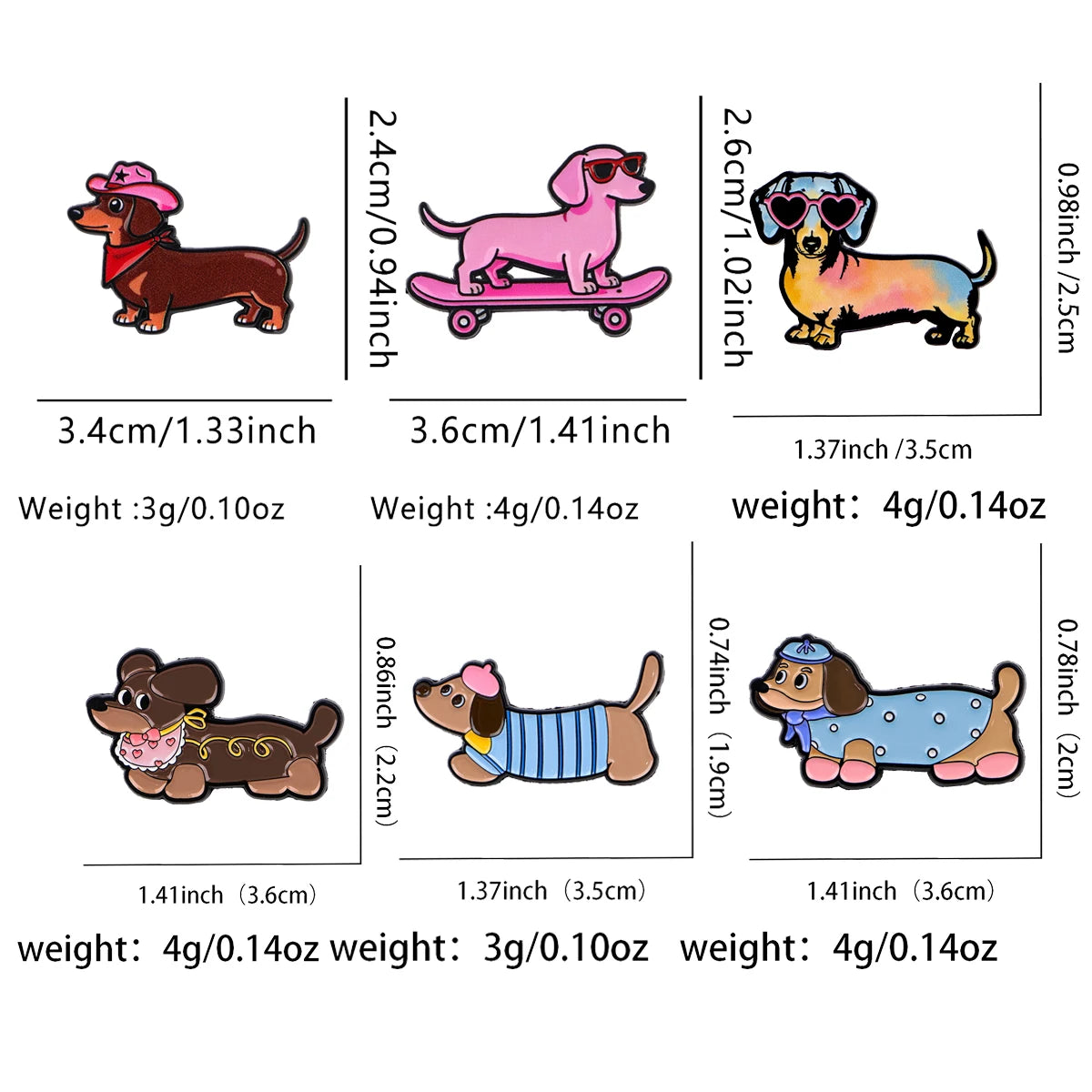 Add a playful and stylish touch to your outfits or accessories with this 6-piece Dachshund enamel pin set. Perfect for dog lovers, these pins feature charming dachshund designs that are ideal for decorating jackets, hats, backpacks, or costumes. Each pin is carefully crafted to bring a pop of color and personality to your everyday look.
