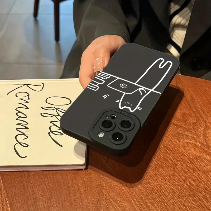 Funny Cat Couple iPhone Case – Cartoon Animal Shockproof Silicone Cover