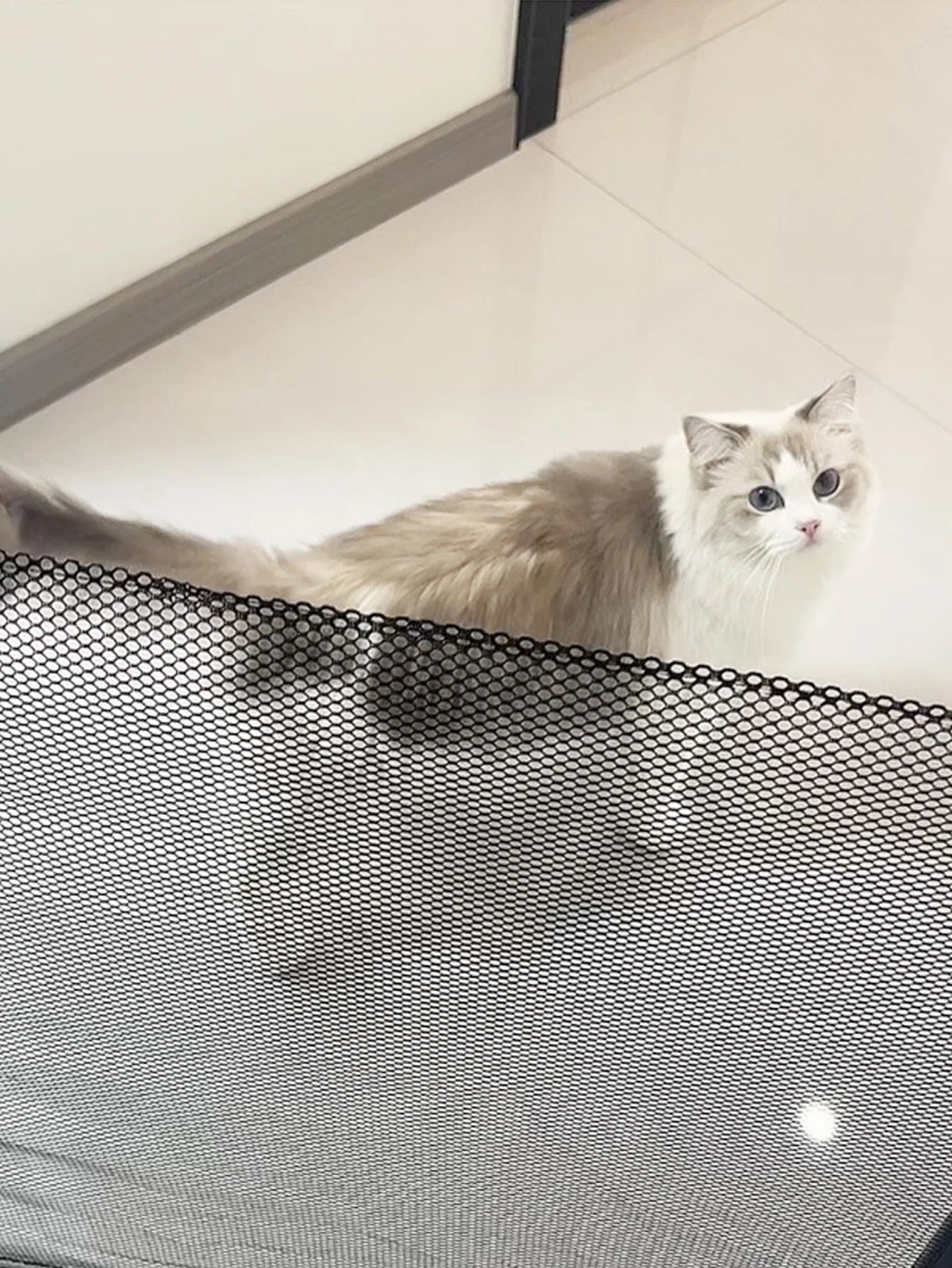 Soft yet durable mesh reduces the risk of injury while effectively blocking pets and toddlers.