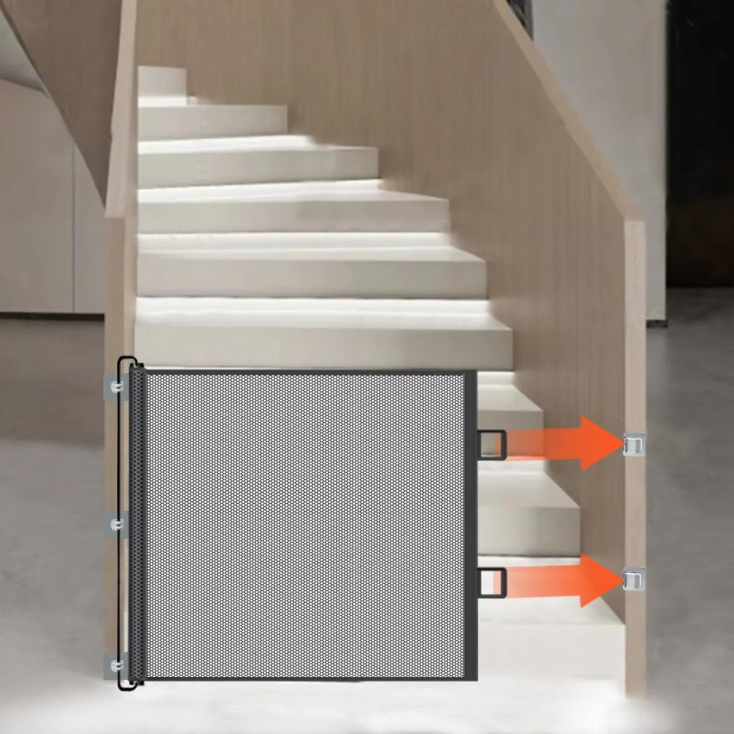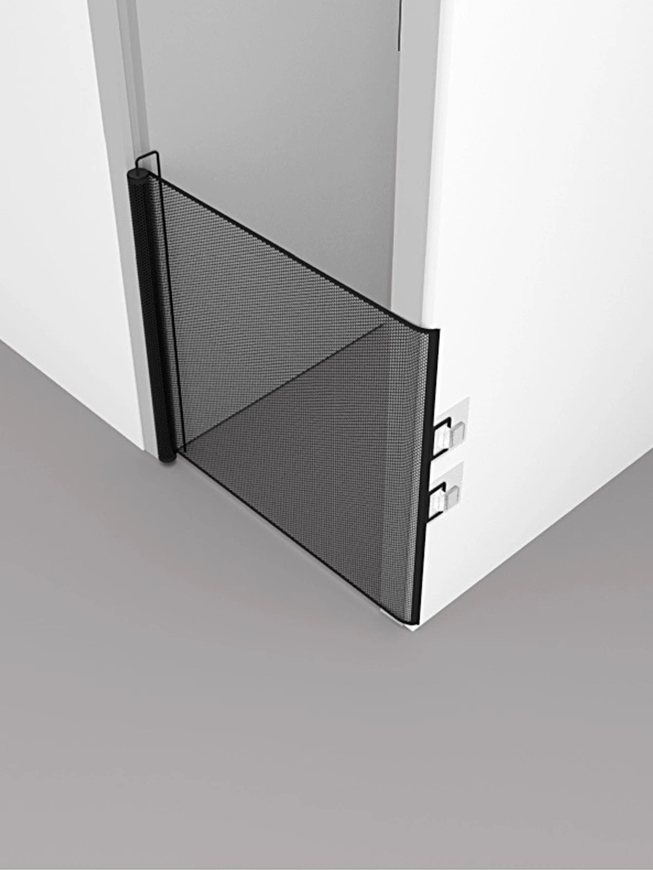 The flexible mesh fence retracts when not in use, saving space and keeping your home neat and clutter-free.